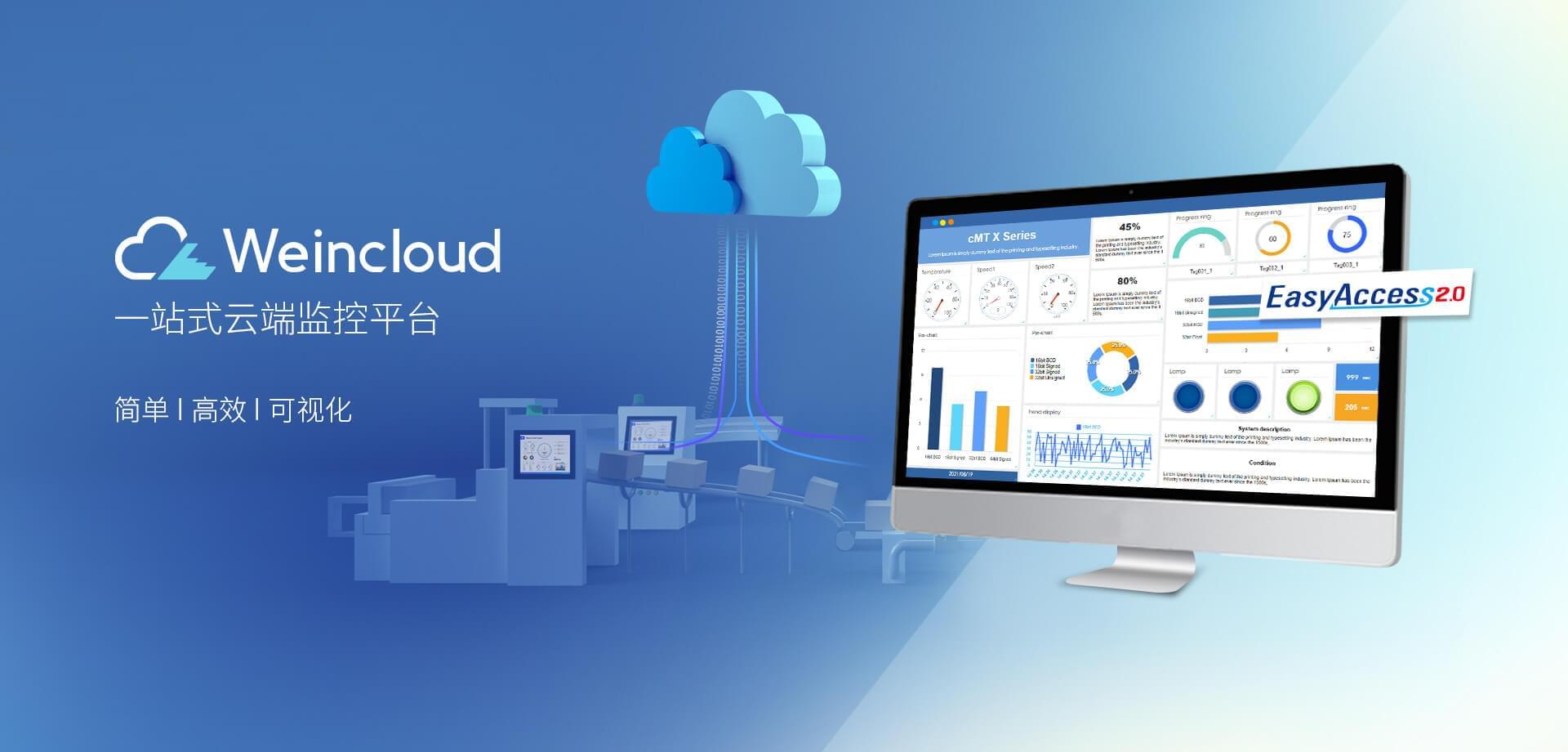 Weincloud 集結EasyAccess2.0遠程監控服務及Dashboard云端儀表服務,將設備資料數據上云并以視覺化呈現,協助管理者實時掌控現場產線狀態。